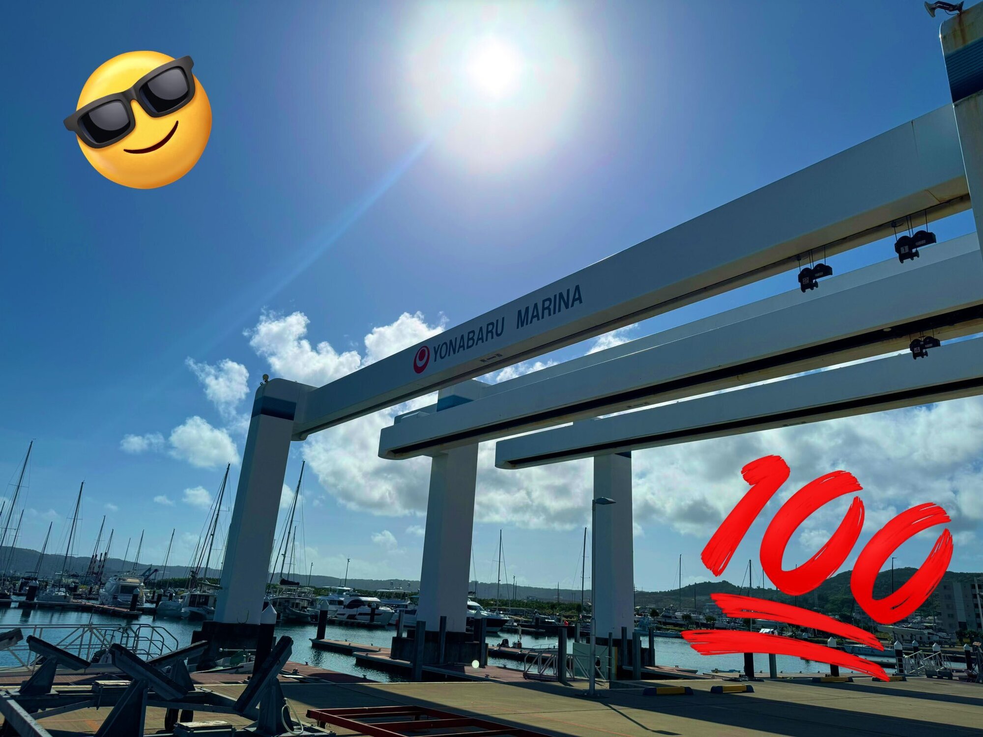 与那原マリーナへ。中村邸のアクティビティ打ち合わせ。あらヨット。