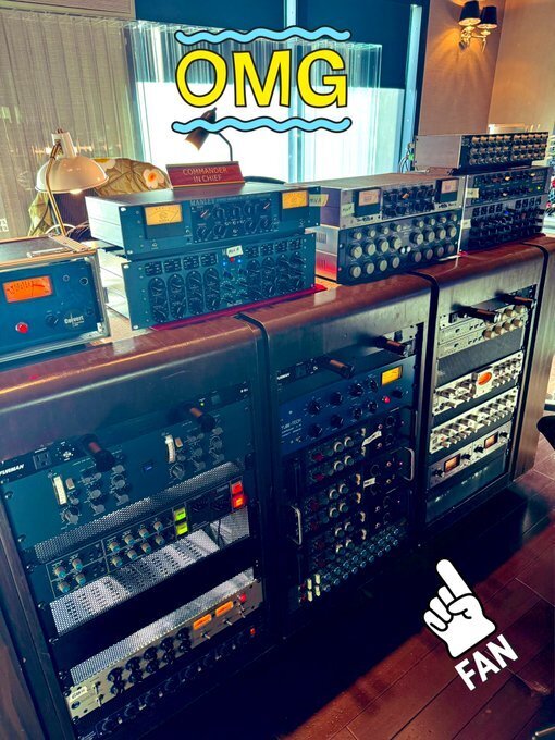 プラグインをできるだけ使わないでやってみようとアナログ機材総動員です。機材好きな人が見るとおー!ってなると思います。