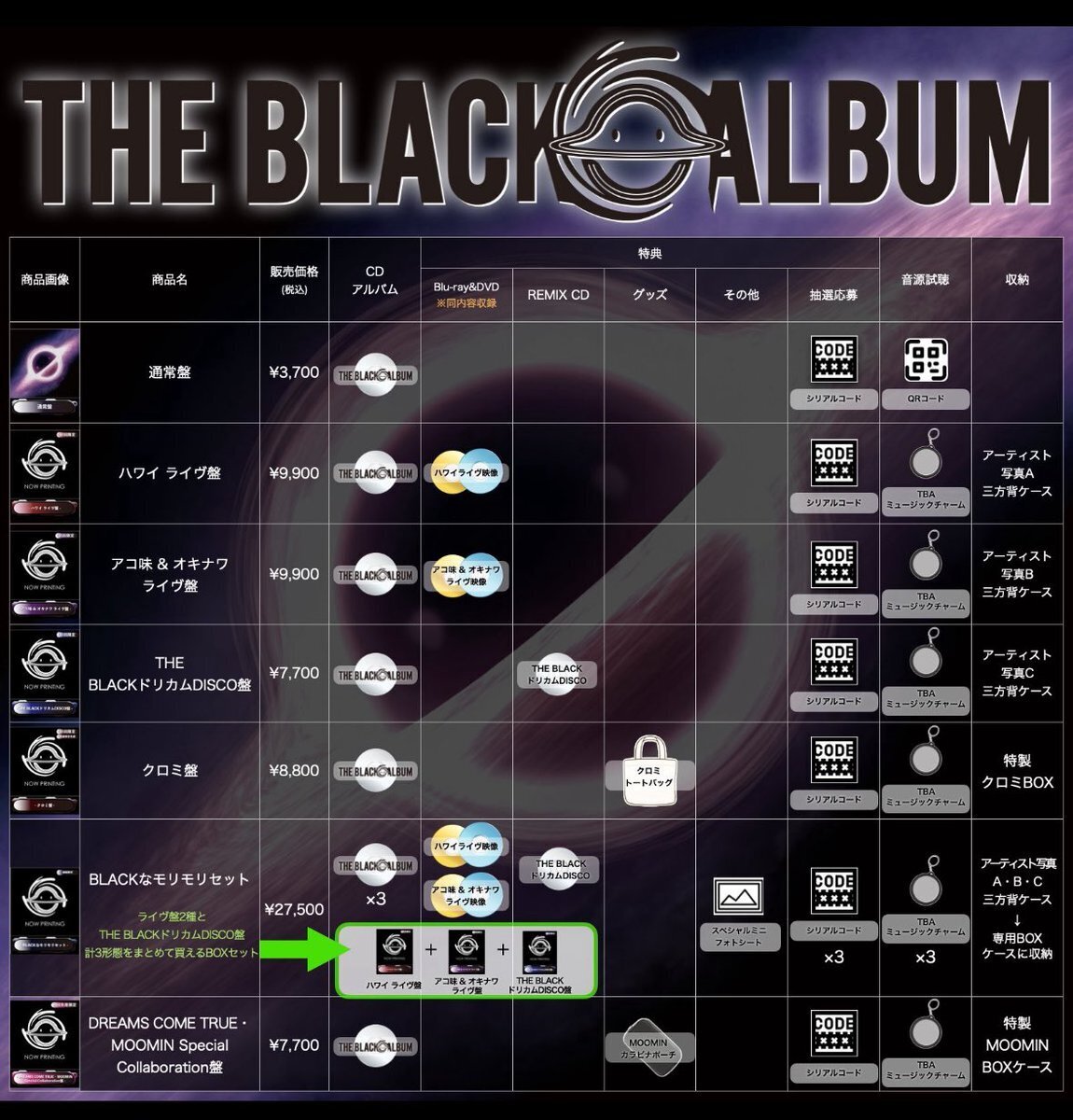 A:『BLACK 〇 ALBUM』全曲をフルで再生いただけます。なお、単曲での再生も可能です。