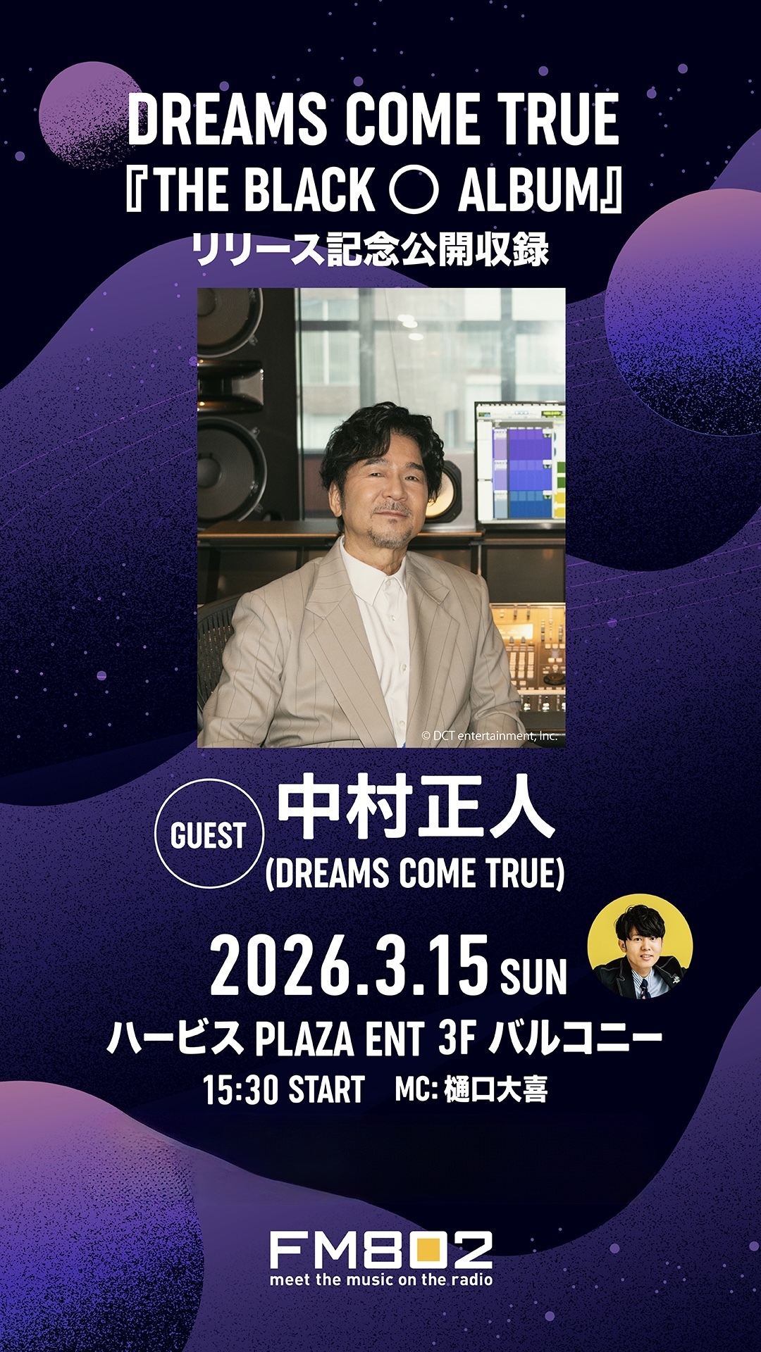 この公開収録の模様は、3月29日 (日) 20:00 ~ の特別番組「FM802 SPECIAL PROGRAM DREAMS COME TRUE 『THE BLACK ◯ ALBUM』」
