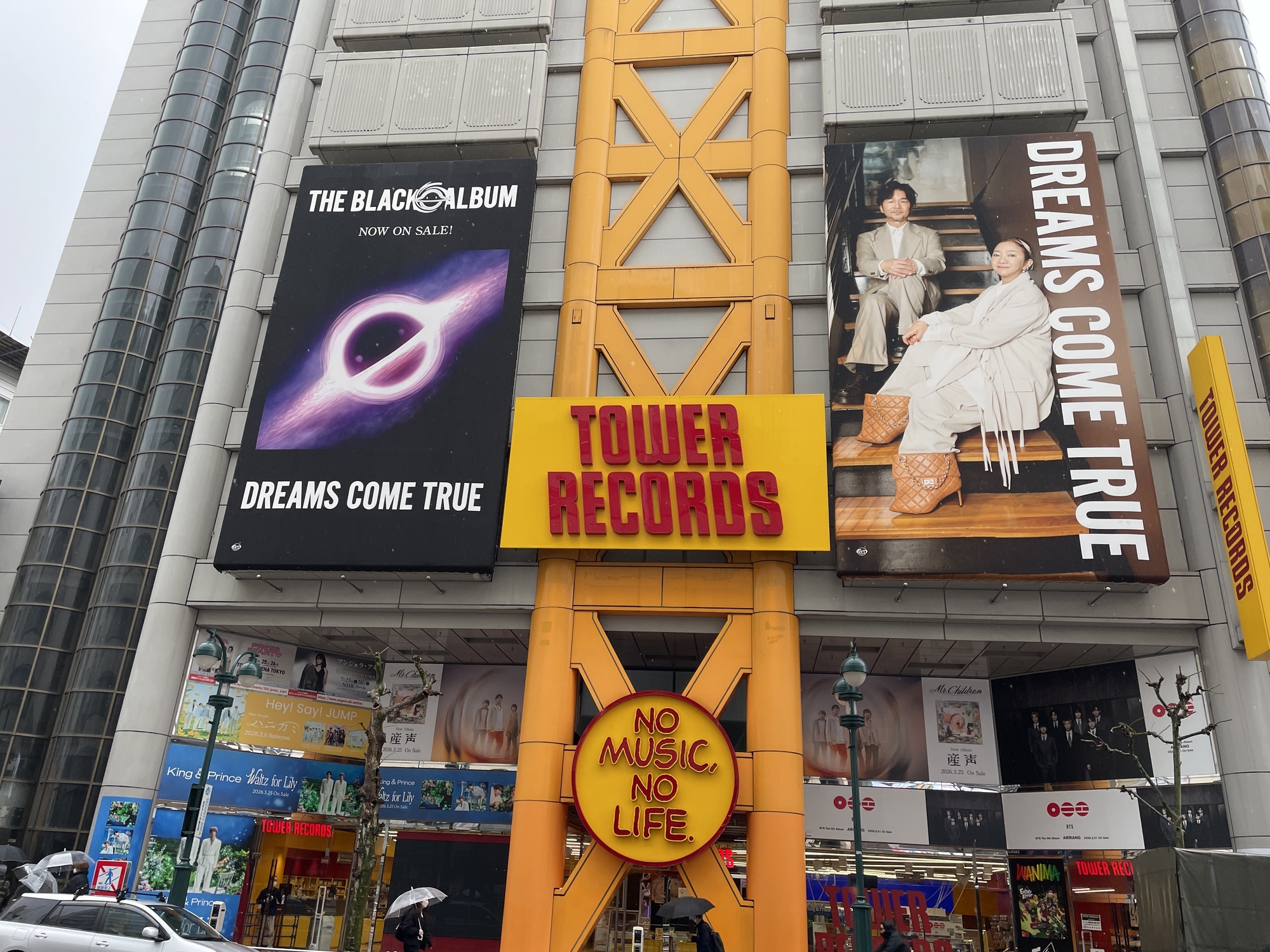 本日より、タワーレコード渋谷店 正面ツインボード広告に、巨大 DREAMS COME TRUE 最新アーティスト写真と