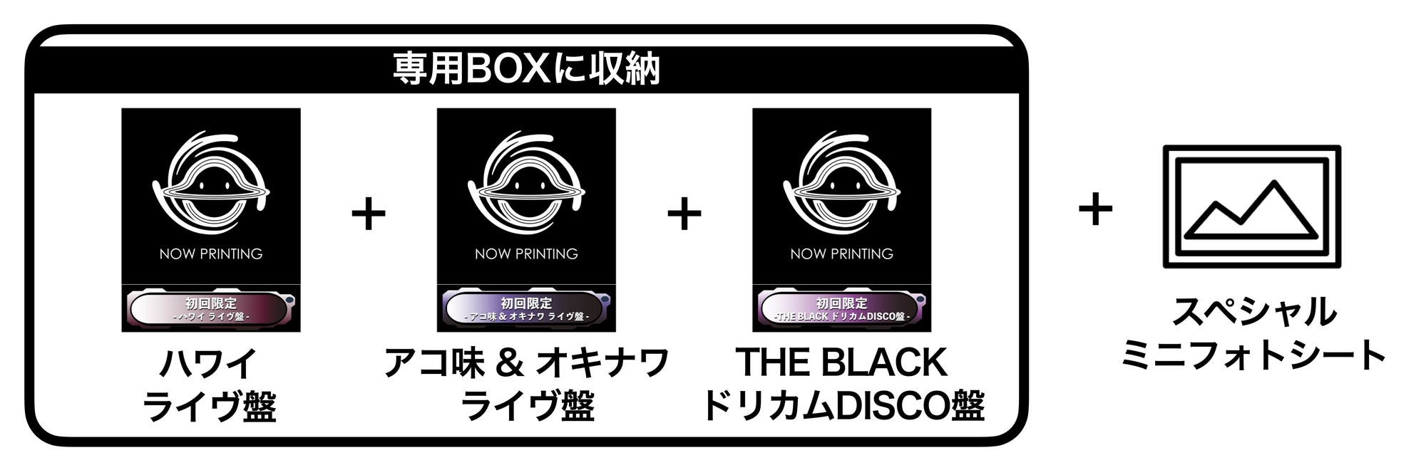 初回限定 ハワイ ライヴ盤 + 初回限定 アコ味 & オキナワ ライヴ盤 + 初回限定 THE BLACKドリカムDISCO盤を専用BOXケースに収納 / ニューヨーク撮り下ろしスペシャルミニフォトシート付属